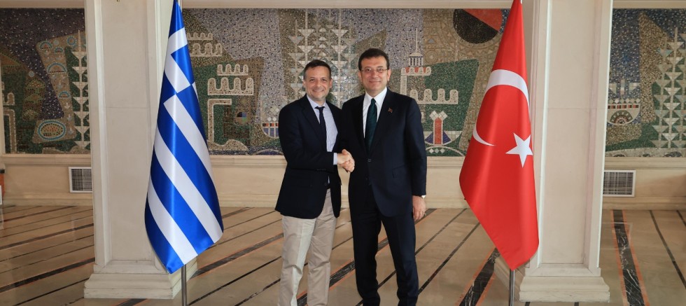 İstanbul Büyükşehir Belediye (İBB) Başkanı Ekrem İmamoğlu, kendisine tebrik ziyaretinde bulunan Atina Belediye Başkanı Haris Doukas’ı Saraçhane’deki makam odasında ağırladı.