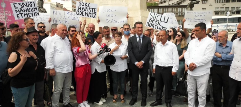 Çek Mağdurları Derneği, ödeyemedikleri çekler nedeniyle hapis cezasına çarptırılan ve pandemi döneminde izinli olarak salıverilenlerin yeni infaz düzenlemesinin kapması dışında tutulmasını Ankara’da protesto etti. Çek mağdurları adına konuşan Fatma Açıkbaş, bu durumdaki esnaf ve iş insanlarının 15 Ağustos’ta yeniden cezaevine gireceğini belirterek, "İş adamı ve iş kadınlarımızın borçlarının olması suç mudur? Eğer suç ise senet borcu, kredi kartı borcu, kredi borcu suç sayılmazken sadece çekini ödeyemeyen iş insanlarına suçlu damgası vurulması adil midir? Oysaki esnaf ve iş insanları, suçlu değil borçludur. Sadece borçlarının olması suç sayılmış; bunun haricinde bugüne kadar karakol kapısından geçmeyen insanlar, 5 yıl indirimsiz, denetimsiz cezaevine gönderilmiştir. Borç hapiste ödenir mi" dedi.