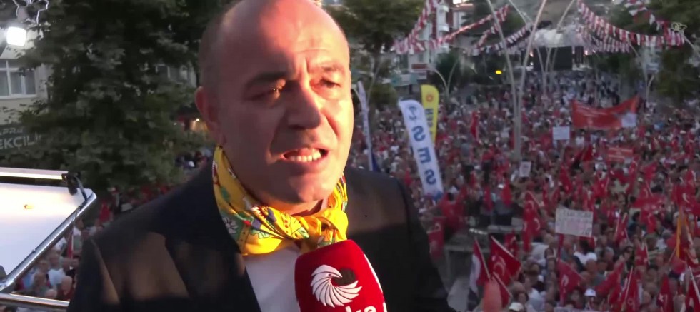 "Günler öncesinden bir Tokat türküsüyle, Ankara'dakilere 'Sen bizi duymasan da bak Tokat sallanıyor' diye Tokatlılar doğaçlama bir şarkıyı söylediler ve bugün bu alanda 'Sen bizi duymasan da bak Tokat sallanıyor' diyecekler. Tarım alanlarını, ormal alanlarını, madenleri açanlara bugün, 'Bak Tokat sallanıyor' diyecekler. Sahte diploma üretenlere, 'Siz bizi duymasan da bak Tokat sallanıyor' diyecekler. Bugün burada 19 Mart'tan beri içeride tutulan büyükşehir belediye başkanlarımız ve diğer belediye başkanı arkadaşlarımıza Tokatlı sahip çıkacak. Millet iradesine burada hep birlikte sahip çıkacak ve 'Bak Tokat sallanıyor' diyecekler.