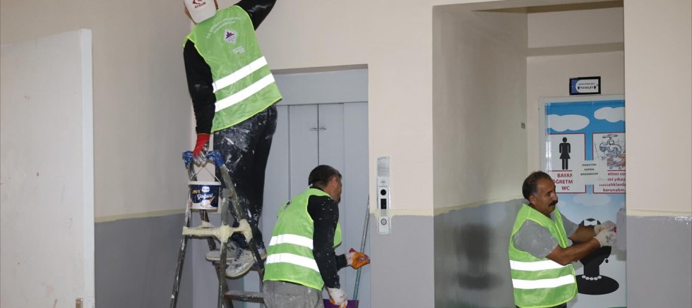 Sınıflardan koridorlara, kapılardan okul bahçelerine kadar birçok alanda yapılan yenileme çalışmalarıyla okullar, öğrenciler için daha konforlu bir görünüme kavuşturuluyor.