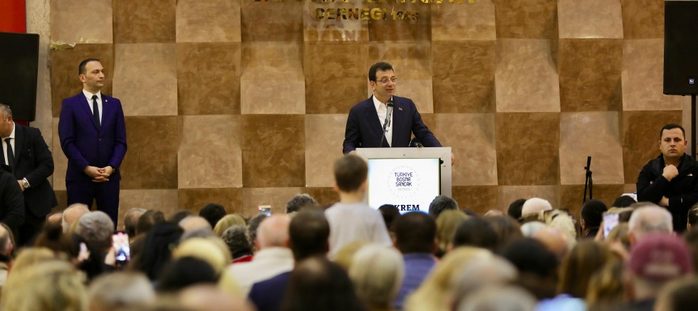 Kurdukları B40 Ağı’nın, geçmişte Balkanlarda yaşanan acılara karşı barışın teminatı olmasını dileyen İmamoğlu, “İnşallah görevimiz, sizlerin desteği olursa, zaten devam edecektir. Buna yürekten inanıyorum Daha iyi, daha güçlü bir iş birliği zeminini sağlayarak, sizlerle birlikte, göreceksiniz Balkanlar'da yaşayan bütün soydaşlarımıza, her birisine ama Bosna Hersek'te ama Bulgaristan'da, Yunanistan'da, onların oradaki mutluluğunu, huzurunu, oradaki çağdaş bir ortamda varlıklarını eğitimden birçok konuya kadar desteklenmeleri hususunda da güçlü iş birliklerine ve programlara imza atacağız. Ve her zaman kulağımız, gözümüz Balkan coğrafyasında olacak. Bu hem Türkiye'nin asla vazgeçilmez dış politika prensibidir hem de İstanbul halkının, 16 milyon insanın ve İstanbul Büyükşehir Belediyesi'nin de asla vazgeçmeyeceği ve mutlak üzerinde duracağı iş birliği ve diyalog prensibi olacaktır. Bu noktada da bizim en önemli rehberimiz, en önemli ışığımız ya da masadaki ortak aklımızın önemli bir parçası, elbette ki Bosna Sancak gibi köklü bir dernek olacaktır” diye konuştu.