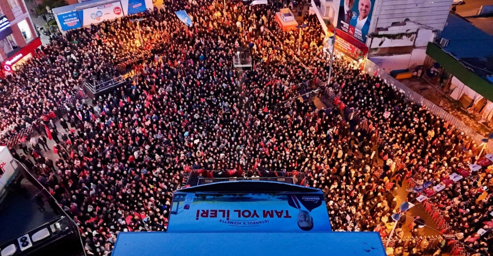 “Her oy, bunlara kibir olarak gidiyor. Her oy, bunlara nasıl bir huy veriyor biliyor musunuz? Milleti hor görme huyu veriyor. Onun için zamlar ve artan hayat pahalılığı bile, onların umurunda değil. Bunlara, bu önümüzdeki 31 Mart'taki seçimde kocaman bir demokrasi dersi vermeye hazır mıyız? İşte onun için, eğer bunların o kibrini, hor görme halini hayat pahalılığı olarak geri dönmesini istemiyorsanız, kardeşinize inanın. Kardeşinize inanın ki, 31 Mart'ta yeni ve güçlü bir perde açılsın. İstanbul'da da Türkiye'de de çok daha müreffeh, çok daha ılımlı, kavgasız, dövizsiz, huzurlu, mutlu günler gelsin istiyorsanız, bize oy vermelisiniz. ‘Yeter söz milletin’ demelisiniz.”