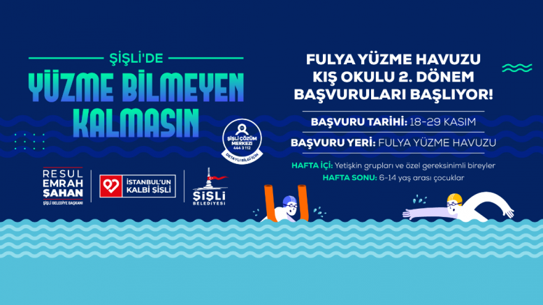 Şişli Belediyesi Fulya Yüzme Havuzu’nun Kış Okulu 2. dönem kayıtları için geri sayım başladı. Sağlıklı bir yaşam için yüzme öğrenmek isteyen tüm Şişlilileri yüzme havuzumuza davet ediyoruz.