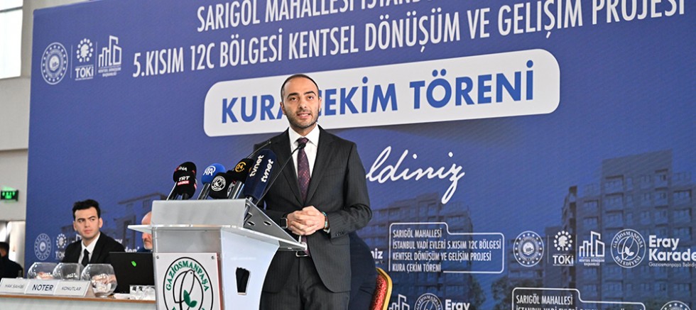 Çevre, Şehircilik ve İklim Değişikliği Bakanlığı, Kentsel Dönüşüm Başkanlığı, Toplu Konut İdaresi Başkanlığı (TOKİ) ve Gaziosmanpaşa Belediyesi iş birliğiyle Sarıgöl Mahallesi’nde inşa edilen İstanbul Vadi Evleri 5. Kısım Kentsel Dönüşüm Projesi için kura çekim töreni düzenlendi. Törene; Gaziosmanpaşa Belediye Başkan Vekili Eray Karadeniz, AK Parti Gaziosmanpaşa İlçe Başkanı İsmail Ergüneş, protokol üyeleri, hak sahipleri ve aileler katıldı. Noter huzurunda yapılan kura çekiminde hak sahipleri, güvenli ve modern imkanlara sahip yeni evlerine kavuşmanın sevincini yaşadı. Proje kapsamında 863 konut, 28 ticari birim, 1.003 araç kapasiteli otopark, 22 bin 278 metrekare yeşil alan, çocuk oyun parkları, spor sahaları, bir okul ve bir yurt projesi yapıldı.