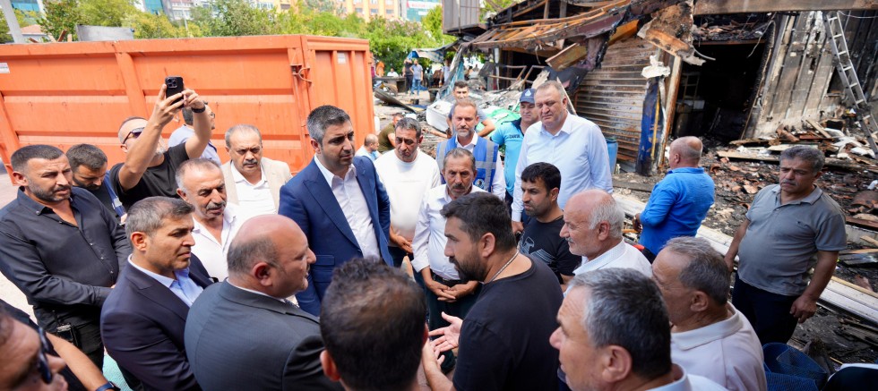 Yangından zarar gören esnafla tek tek görüşen Başkan Gökhan Yüksel, “Esnafımızın yeniden ayağa kalkması için elimizden geleni yapacağız” diyerek, şunları söyledi: