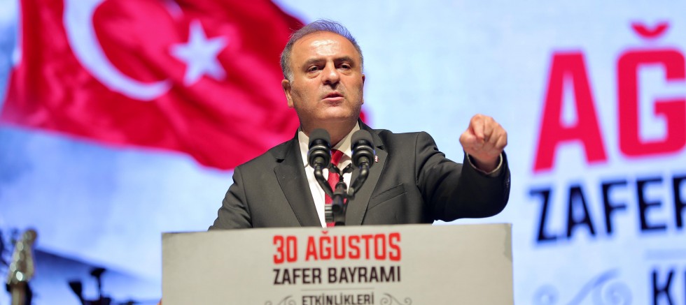 Vatandaşların 30 Ağustos Zafer Bayramı’nı kutlayan Aslan, konuşmasına, “Sizlere büyük bir hukuksuzlukla Silivri’de tutuklu bulunan Ekrem Başkanımızın selamını getirdim. Biliyorum ki Ekrem Başkanımız çıkacak, nice zaferleri ve nice bayramlarımızı hep beraber kutlayacağız,” sözleriyle başladı. “Biz sıradan bir ülke değiliz,” diyen Aslan, “Biz, düşman işgaline direnmiş bir ülkeyiz. Biz, ‘Ya istiklal ya ölüm’ diyenlerin torunlarıyız. 103 yıl önce Dumlupınar’da, ebedi Başkomutanımız Gazi Mustafa Kemal Atatürk’ün önderliğinde bir destan yazdık. Çok cephede çarpıştık. Yokluk, açlık ve türlü belalar içinde azimle direndik, öyle var olduk. Vatan sevdamız, bağımsızlık aşkımız ve özgürlük tutkumuzla kazandık. 30 Ağustos zaferimiz, sadece askeri bir başarı değil. Aynı zamanda Cumhuriyet devriminin de ilk adımıdır. Kayıtsız şartsız millet egemenliğinin ilk adımıdır. İşte bu nedenle 30 Ağustos zaferi eşsizdir. Bu nedenle 30 Ağustos zaferi Türk milletinin küllerinden yeniden doğuşudur,” şeklinde konuştu.