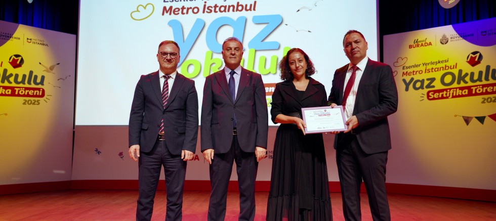 İstanbul Büyükşehir Belediyesi (İBB) iştiraki Metro İstanbul’un bu yıl dördüncüsünü düzenlediği Yaz Okulu öğrencileri mezun oldu. Yaz boyunca programa katılan 403 öğrenciye, Esenler’deki İBB Prof. Dr. Adem Baştürk Kültür Merkezi’nde düzenlenen törenle sertifikaları verildi. Mezun öğrencilerin Metro İstanbul Çocuk Korusu dersinde öğrendiği şarkıları hep bir ağızdan seslendirmesiyle renklenen sertifika töreninde; İBB Başkanvekili Nuri Aslan, Metro İstanbul Yönetim Kurulu Başkanı Özgür Soy ve Metro İstanbul Genel Müdürü Özhan Şenol birer konuşma yaptı.
