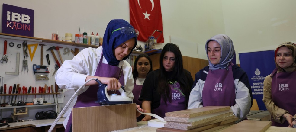 İstanbul Büyükşehir Belediyesi (İBB), kadınların yaşamın her alanında etkin, özgüvenli ve donanımlı bireyler olarak var olmalarını destekleyen çalışmalarını sürdürüyor. Bu kapsamda İBB Kadın, “Yaratıcı Kadınlar için Marangozluk Atölyesi” düzenledi. Bakırköy’de bulunan İBB Sosyal Hizmetler Dairesi Başkanlığı Marangozhanesi’nde dün gerçekleştirilen “Kadınlar İçin Temel Marangozluk Becerileri Giriş Eğitimi” atölyesine katılan kadınlar, ahşap, MDF, sunta gibi malzemelerin özellikleri ve kullanım alanlarını, dekupaj, freze, planya, zımpara ve benzeri temel el aletlerinin kullanımı, birleştirme, cilalama, yapıştırma, çizme, vidalama, dolap kulp/menteşe montajı, ray takma gibi pratik uygulamaları ve raf, ayakkabılık, çerçeve gibi küçük mobilya ve ahşap eşyaların yapımını öğrendi.