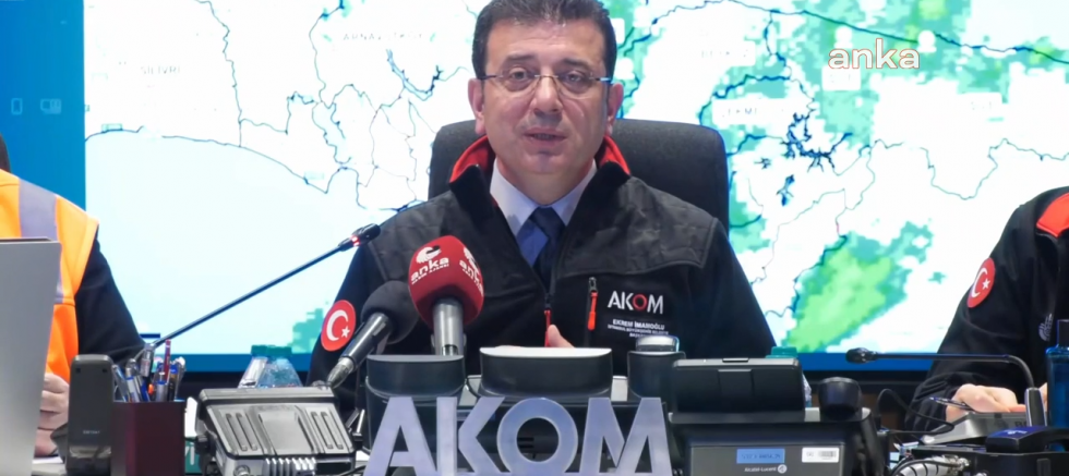 İstanbul’da bütün kurum ve kuruluşların büyük bir mücadele içinde olduğuna vurgu yapan İmamoğlu, “Buradaki uzman dostlarımızın, meteorolojiden aldığı raporlar doğrultusunda bize aktardıkları bilgiler ışığında, yarın sabah itibariyle daha etkin bir kar yağışının İstanbul'a girmesi bekleniyor. Sabah erken saatlerde başlayacak olan bu yoğun kar yağışı beklentisi, cumartesiyi de kapsayacak şekilde devam edecek. Bütün bu bakışı elde ettiğimizde, söylenecek tek şey var: Yani bugünden çok daha fazla tedbirli, özellikle trafiğe çıkma konusunda vatandaşlarımızın özellikle ve özellikle yarını çok daha tedbirli bir şekilde geçirmesi gerekiyor. Bunun bir başka anlamı; imkanınız varsa aracınızla mümkün olduğu kadar yarın trafiğe çıkmayın ve toplu taşıma imkanlarından faydalanın. Araç sayısı ne kadar az olursa, gerçekten sahadaki tedbirlerin daha güvenli bir biçimde gerçekleşmesi söz konusu. Kaldı ki bir araç bile bazen yolda kaldığında, bütünüyle bir aksı, bir yol akışını engelleyebilecek bir pozisyonda. Bütün bu yönleriyle çalışmamızın özellikle sağlıklı sürdürülebilmesi açısından, vatandaşlarımıza eee. talebimizi yineliyorum. Özellikle yarın sabah erken saatlerde yoğun bir biçimde artması beklenen kar yağışından ötürü, lütfen vatandaşlarımızın özel araçlarıyla, zorda kalmadıkça, mümkün oldukça, elbette çıkacaksa da kar ve kış koşullarına uygun ise donanımları çıksınlar. Ama onun dışında çıkmamalarını öneriyoruz. Toplu taşımayı kullanmalarını ve bu şekilde hareket etmelerini öneriyoruz” ifadelerini kullandı.