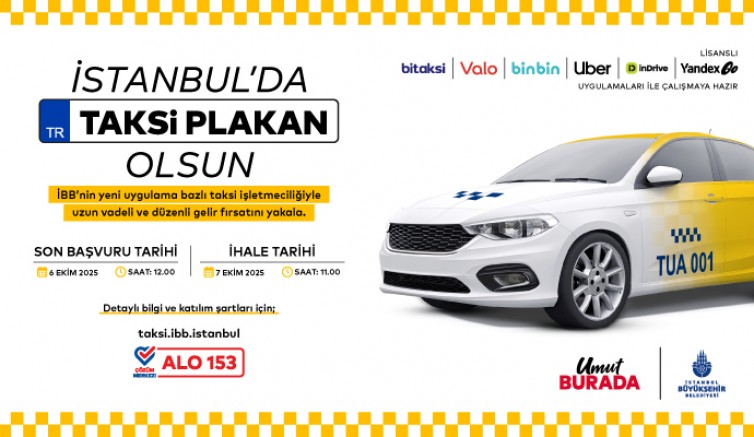 İstanbul Büyükşehir Belediyesi’nin (İBB) şehir içi ulaşımda konfor, güvenlik ve erişilebilirliği artırmak amacıyla başlattığı, Uygulama Bazlı Taksi’nin üçüncü ihalesi 7 Ekim 2025’te gerçekleştirilecek. Yenikapı’daki Dr. Mimar Kadir Topbaş Gösteri ve Sanat Merkezi Etkinlik Alanı’nda yapılacak ihaleye katılmak isteyenler için son başvuru tarihi ise 6 Ekim 2025.