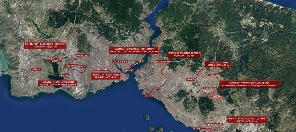 İBB, 2019’dan itibaren raylı sistemler için yaklaşık 2,5 Milyar Euro kaynak bularak, 65,1 km'lik raylı sistem hattını hizmete açtı. Buna Ulaştırma ve Altyapı Bakanlığı’nın yapımını tamamlayıp, işletmesi için İBB'ye devrettiği ve 13,5 milyar TL olan, tüm yapım bedelinin 2 yıldan kısa sürede İBB’den kesildiği 3 metro hattı da dahil edildiği zaman 87,1 km hattı hizmete alınmış oldu.