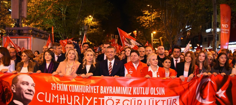 Cumhuriyet Yürüyüşü’nde yurttaşlara seslenen CHP Genel Başkanı Özgür Özel, konuşmasına, “Cumhuriyet meşalesini hiç elinden bırakmayan, mücadeleyi her sene daha ileriye taşıyan güzel Kadıköy, canım İstanbul; hepimizin Cumhuriyet Bayramı kutlu olsun. Bu güzel akşamda bize söyleyecek söz bırakmadınız. Ne söylenecekse, bu tarihi akşamda buraya gelerek bu caddeyi baştan sona doldurarak, yüz binler değil milyonlar olarak tarihe damganızı vurdunuz. Hepinizi yürekten kutluyorum.” diyerek başladı.