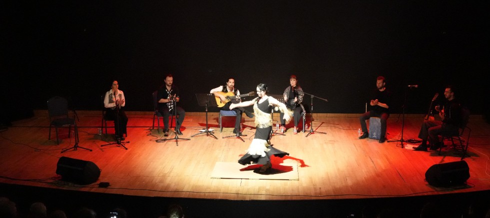 Grubun kurucusu ve usta gitarist Fırat Dağıdır’ın, İspanya’nın Endülüs bölgesine ait tınıları bu toprakların müzikal zenginlikleriyle harmanlayarak oluşturduğu özel repertuvar izleyicilerden büyük alkış aldı. Sanatçıya sahnede; perküsyon ve flütte Ahmet Kalır, bas gitar, gitar ve neyde Onur Mermer, güçlü vokaliyle Makbule Eksert, dans ve palmasta Emre Cinemre ile büyüleyici danslarıyla Şeyda Cirit ve Katerina Volgari eşlik etti. Müzik kariyerinde “Çatılar”, “514” ve rumba formundaki “Viajero” gibi eserlerle dikkat çeken Dağıdır ve ekibi, görsel ve işitsel bir şölen sundu.