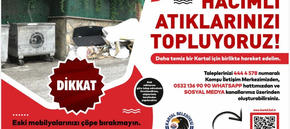 Kartal Belediyesi, çevre kirliliğiyle mücadele ile atık geri dönüşümünde dev bir adım daha atarak "Hacimli Evsel Atık" toplama projesini hayata geçirdi. Proje kapsamında artık eski eşya ve mobilya atıkları sokaklara terk edilmeyecek; talep oluşturma sistemiyle doğrudan mahallelerin belirlenen noktalarından teslim alınacak.