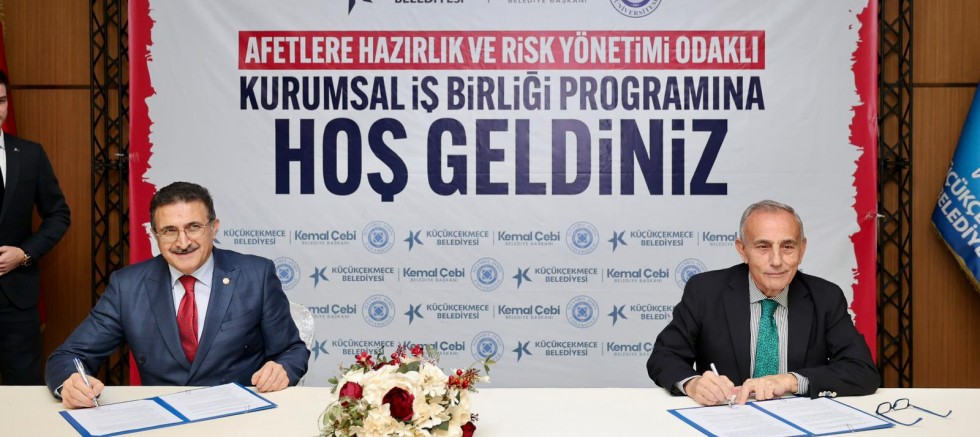 Küçükçekmece Belediyesi'nin ev sahipliğinde Afetlere Hazırlık ve Risk Yönetimi Odaklı Kurumsal İş Birliği programı düzenlendi. Belediye Binasında düzenlenen programın sonunda Küçükçekmece Belediye Başkanı Kemal Çebi ve İstanbul Aydın Üniversitesi Rektörü Prof. Dr. İbrahim Hakkı Aydın, ‘Afetlere Hazırlık ve Risk Yönetimi Odaklı Kurumsal İş Birliği’ Protokolünü imzaladı.