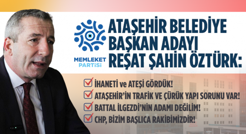 Memleket Partisi sosyal medya hesabından yaptığı açıklamasında; "İstanbul Ataşehir Belediye Başkan Adayımız Reşat Şahin Öztürk olmuştur.Önceliğimiz; Ataşehir'i deprem dirençli bir kent haline getirmek. Bunun için hep birlikte çalışacak, hep birlikte başaracağız!" ifadelerine yer verdi.