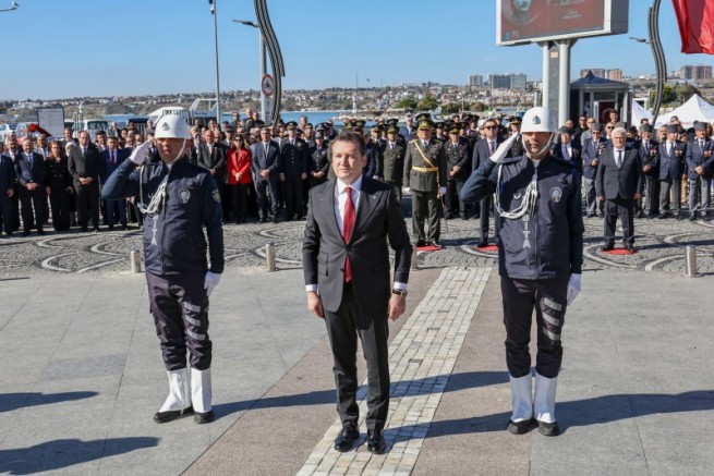 Silivri Sahili'nde gerçekleşen törende, Silivri Belediye Başkanlığı, Silivri Kaymakamlığı ve Garnizon Komutanlığı Atatürk Anıtı’na çelenk bıraktı.