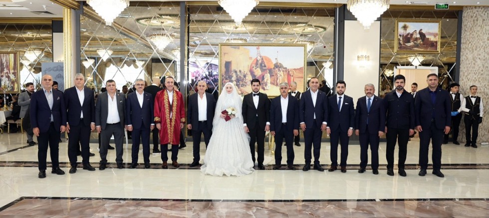 Yer aldı. Protokol üyeleri genç çifte mutluluk temennilerini ileterek ailelerle hatıra fotoğrafları çektirdi.
