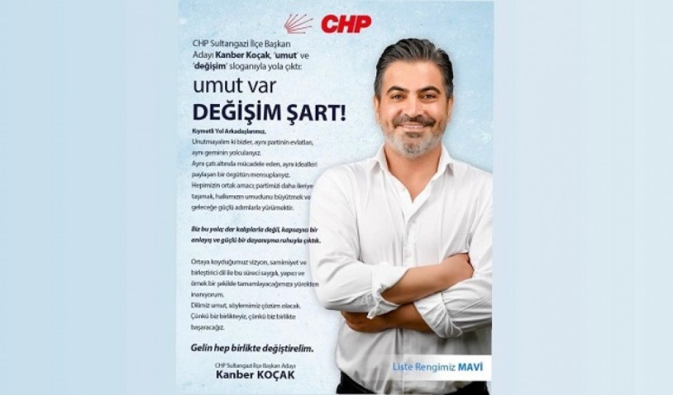 “Umut var, değişim şart” sloganıyla CHP tabanına çağrıda bulunan Kanber Koçak, liste renginin de mavi olduğunu duyurdu.