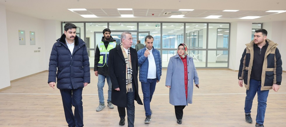 İnşaatı bitim aşamasına gelen Yunus Emre Gençlik ve Spor Merkezi’ni yerinde inceleyen Başkan Dursun, proje hakkında yetkililerden detaylı bilgi aldı.